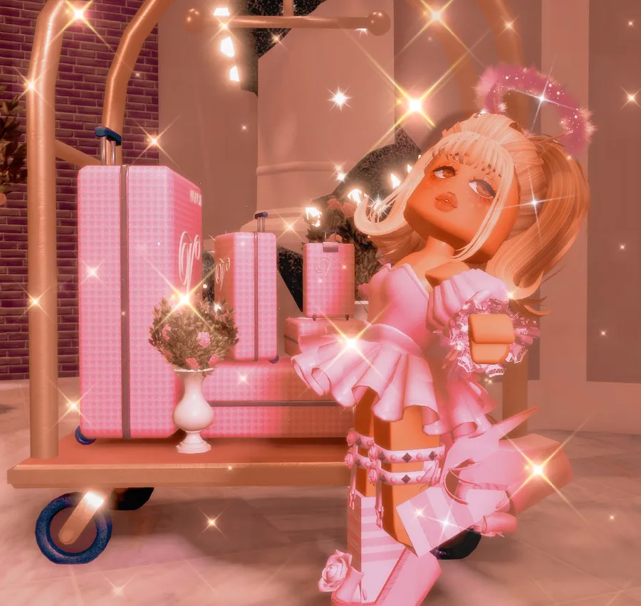 A Girl In Pink Dress Is Standing Next To A Pink Cart Wallpaper
