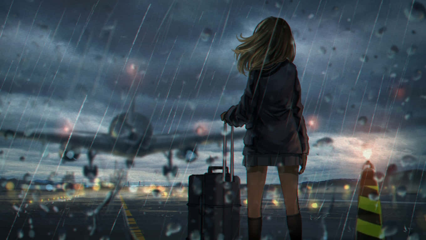 A Girl Is Standing In The Rain Wallpaper