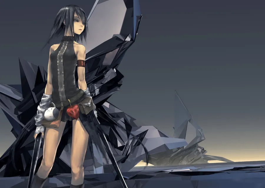 A Girl With A Sword Standing In Front Of A Rock Wallpaper