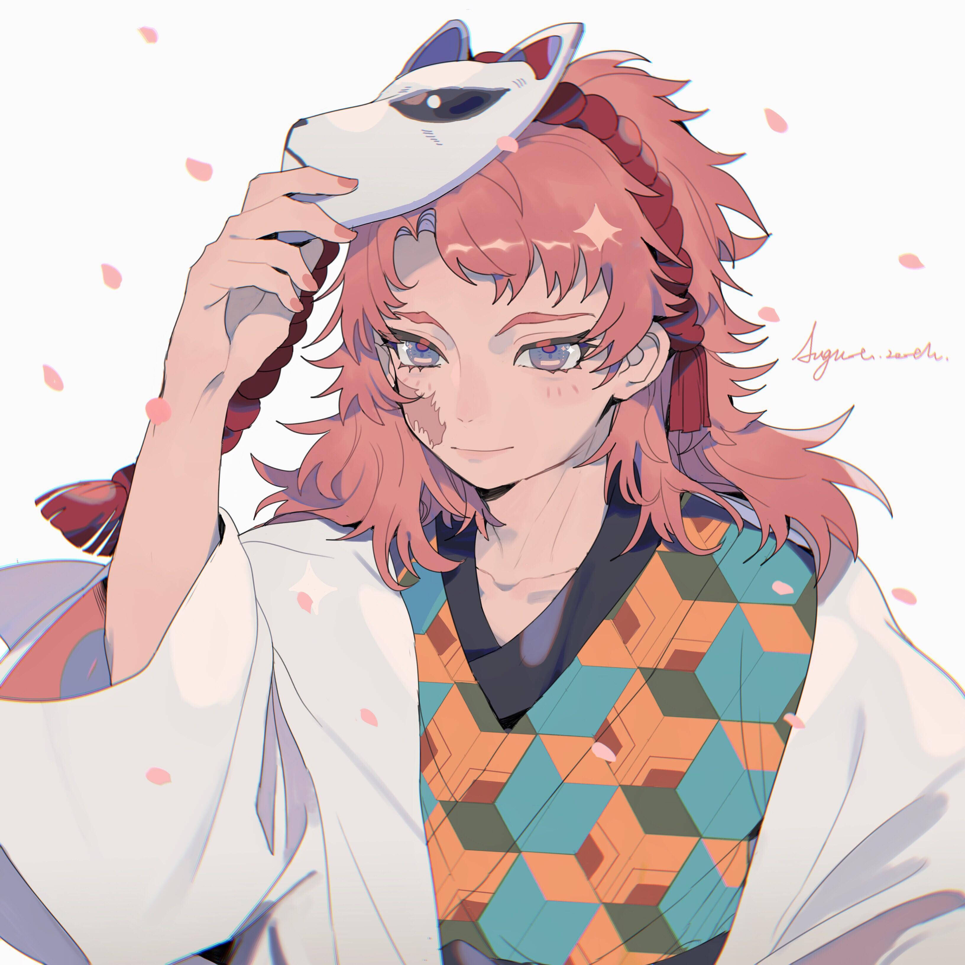 A Girl With Pink Hair And A Cat Mask Wallpaper