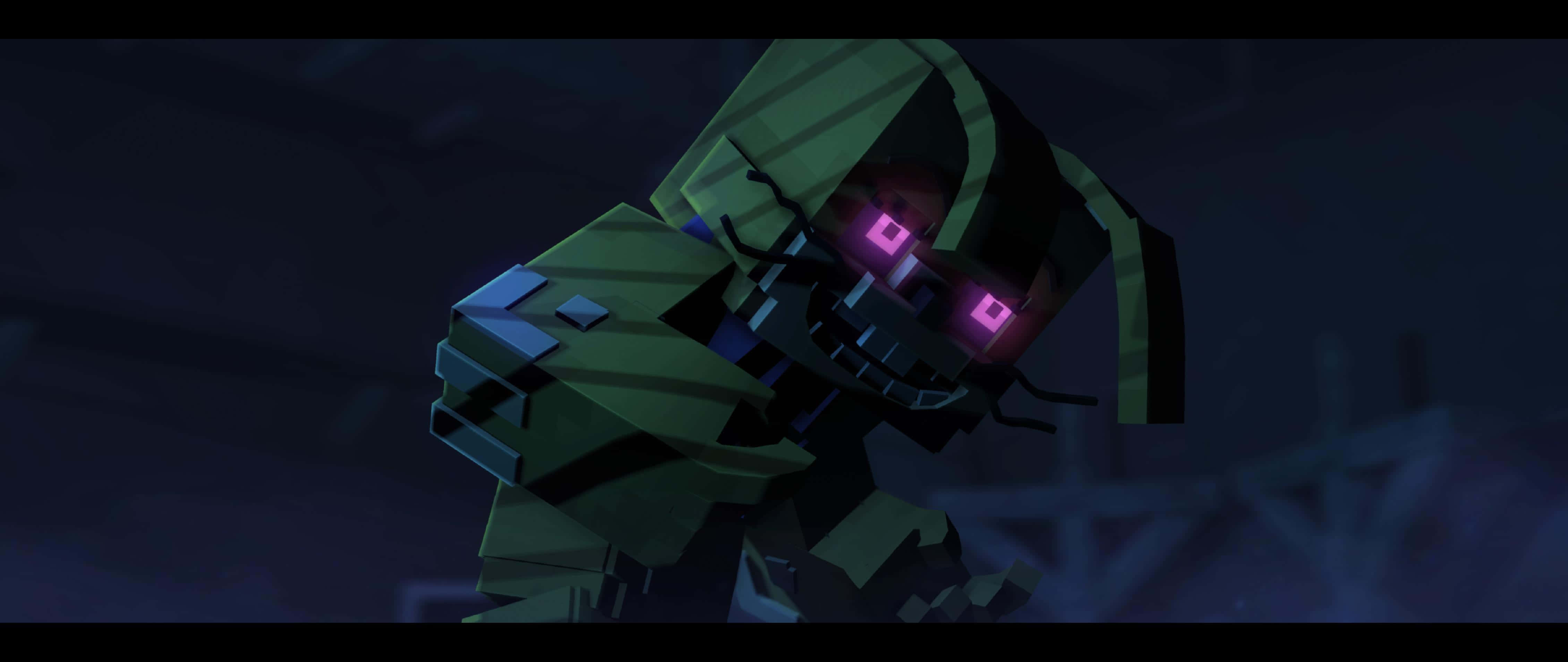 A Green Monster With Pink Eyes In The Dark Wallpaper
