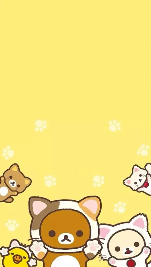 A Group Of Kawaii Animals On A Yellow Background Wallpaper
