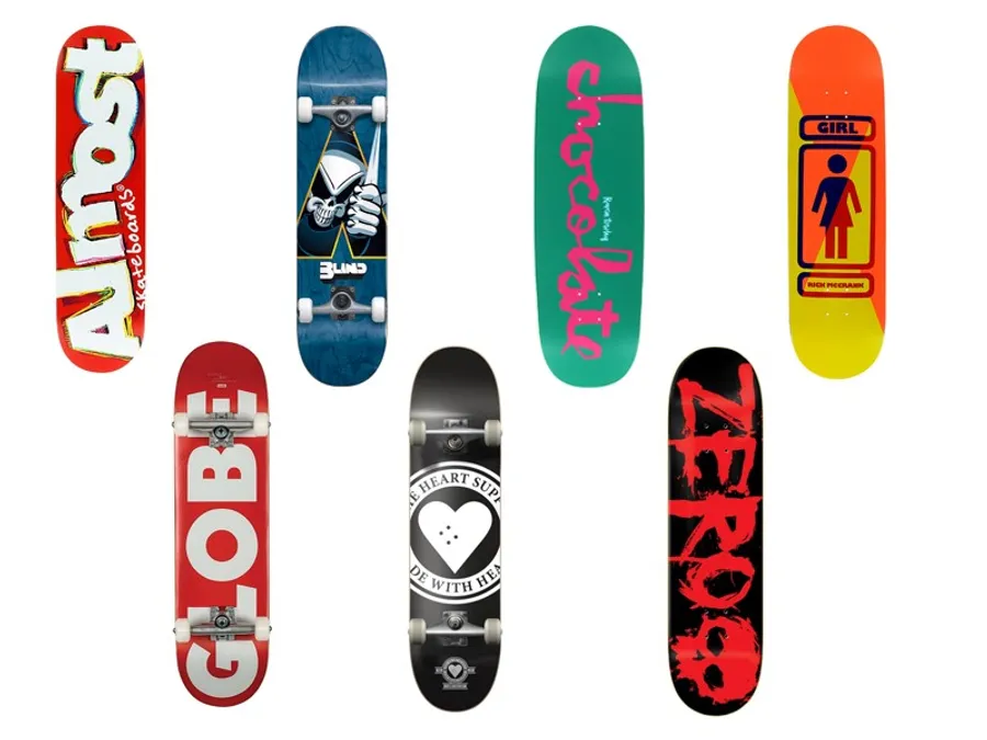 A Group Of Skateboards With Different Designs On Them Wallpaper