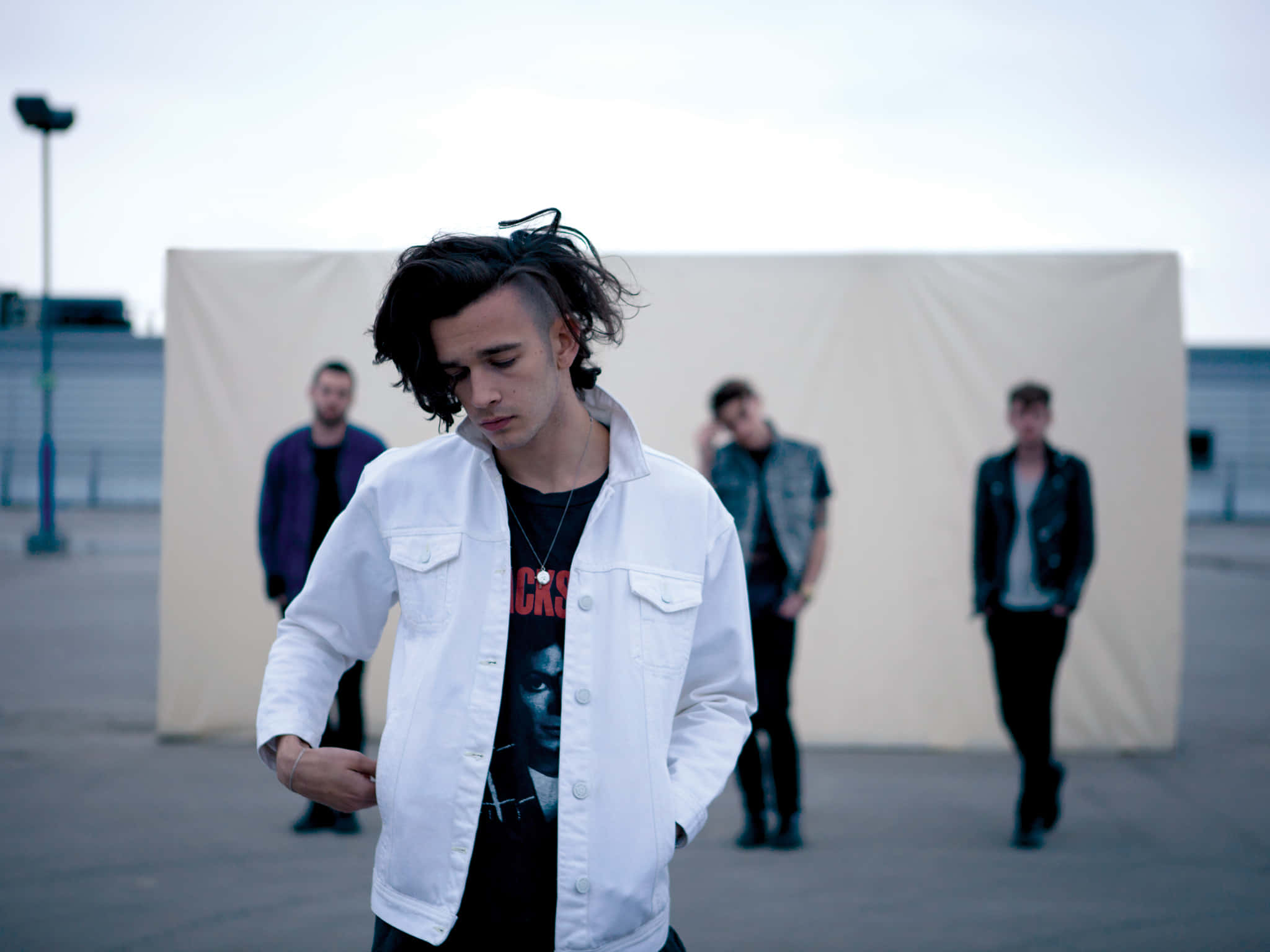 A Group Of Young Men Standing In Front Of A White Wall Wallpaper