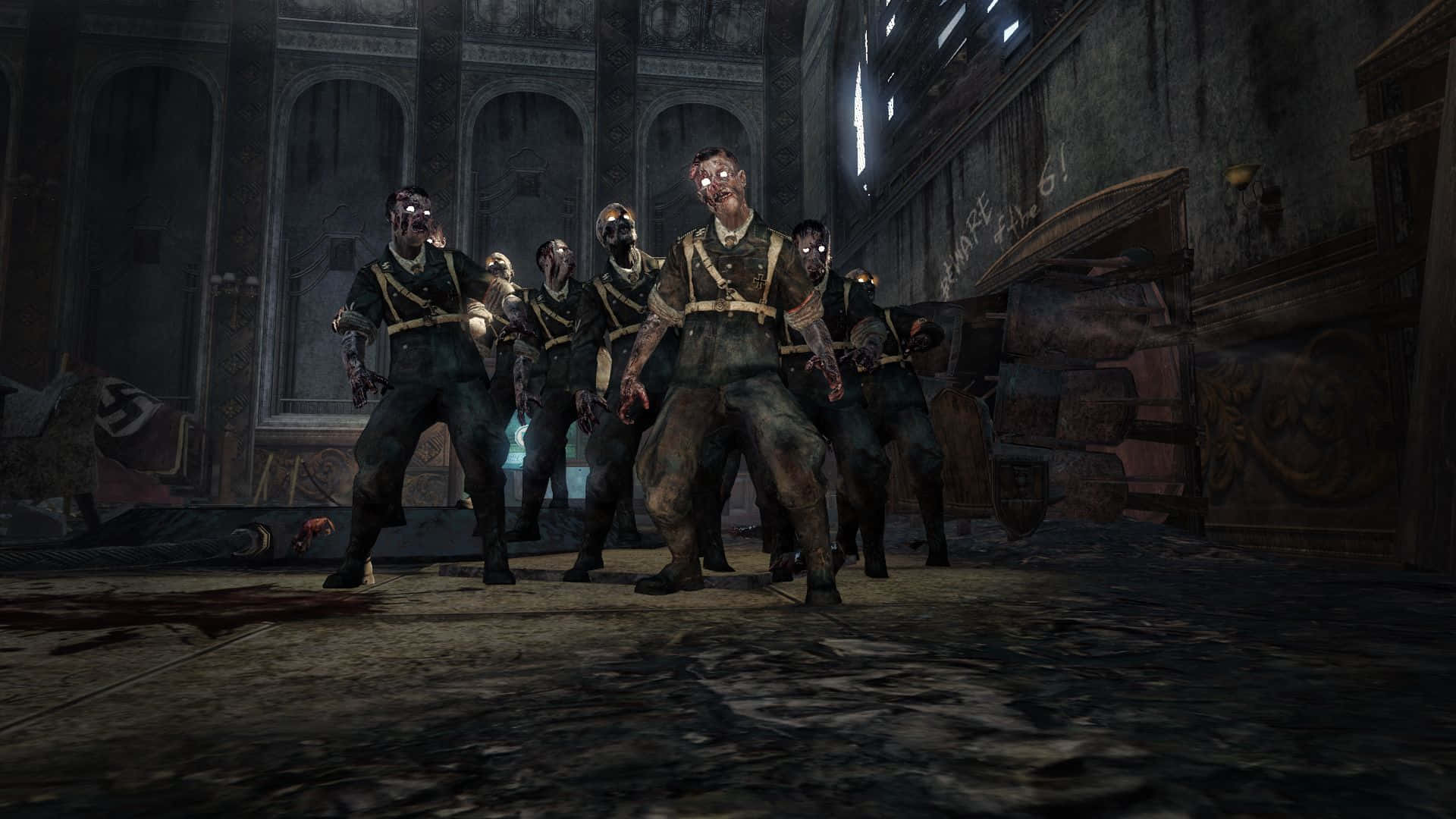A Group Of Zombies Standing In A Room Wallpaper