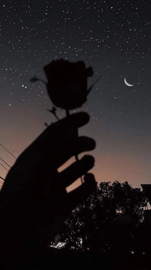 A Hand Holding A Rose In The Sky With The Moon And Stars Wallpaper