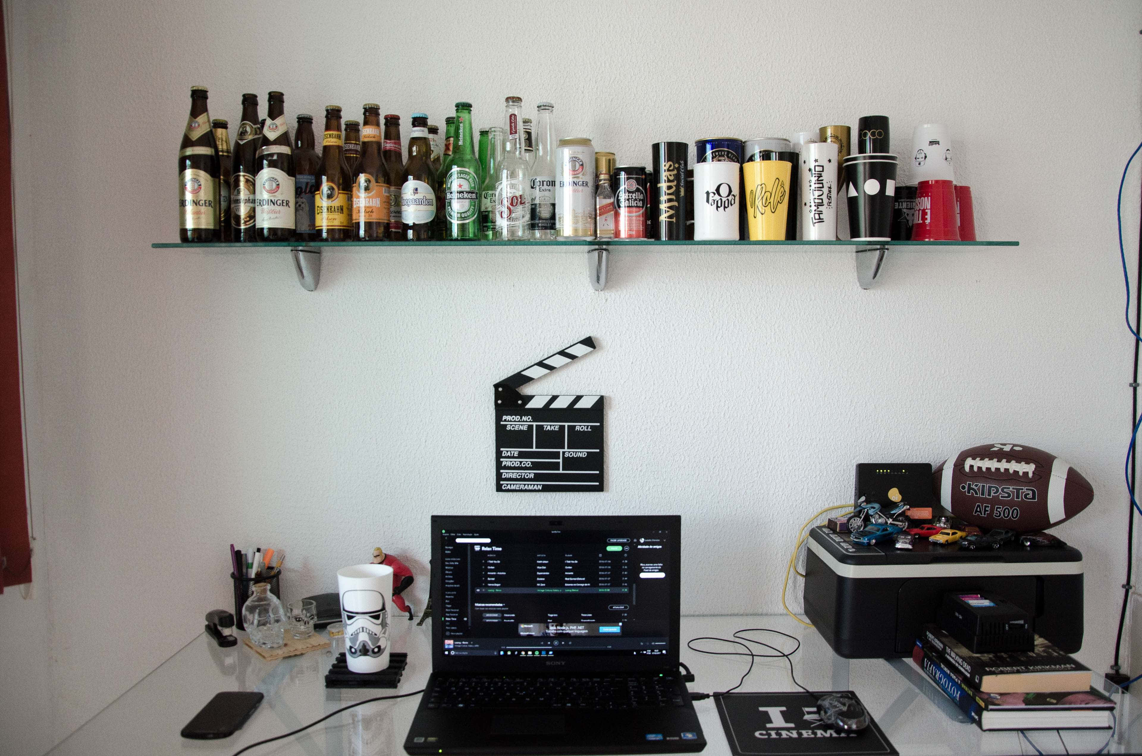 A Laptop Computer On A Shelf Wallpaper