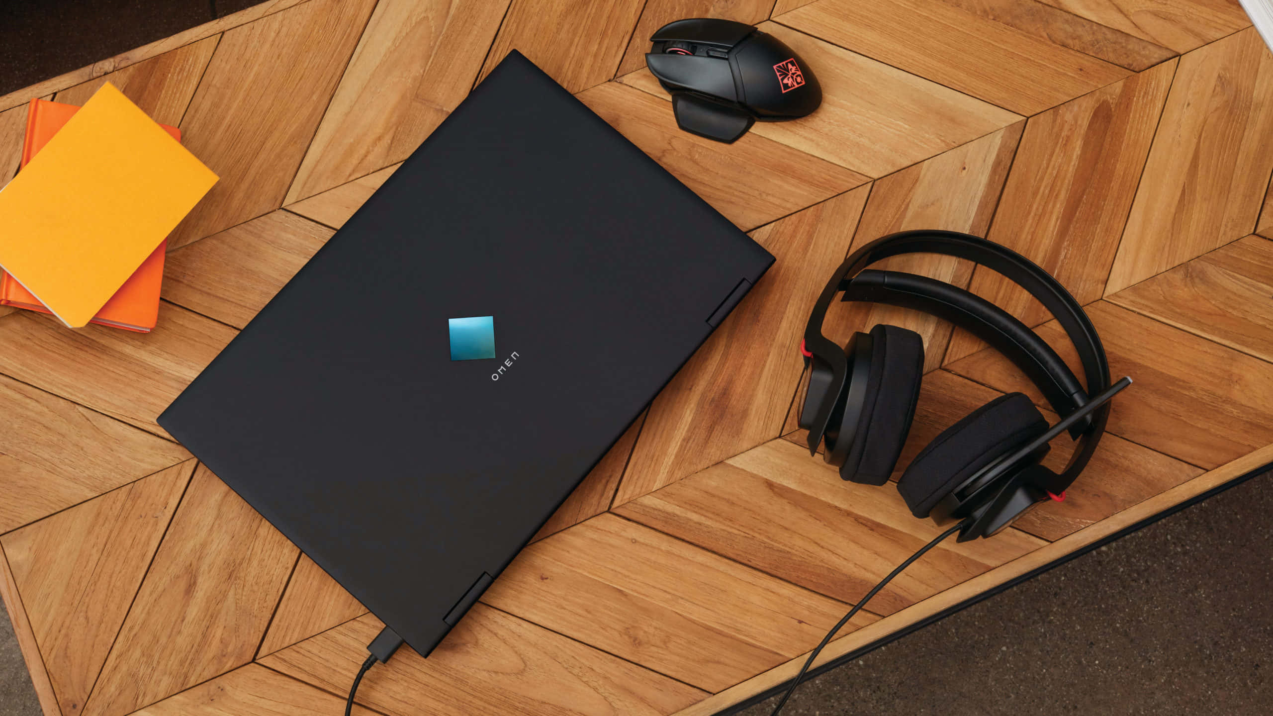 A Laptop, Headphones, And A Mouse On A Wooden Table Wallpaper
