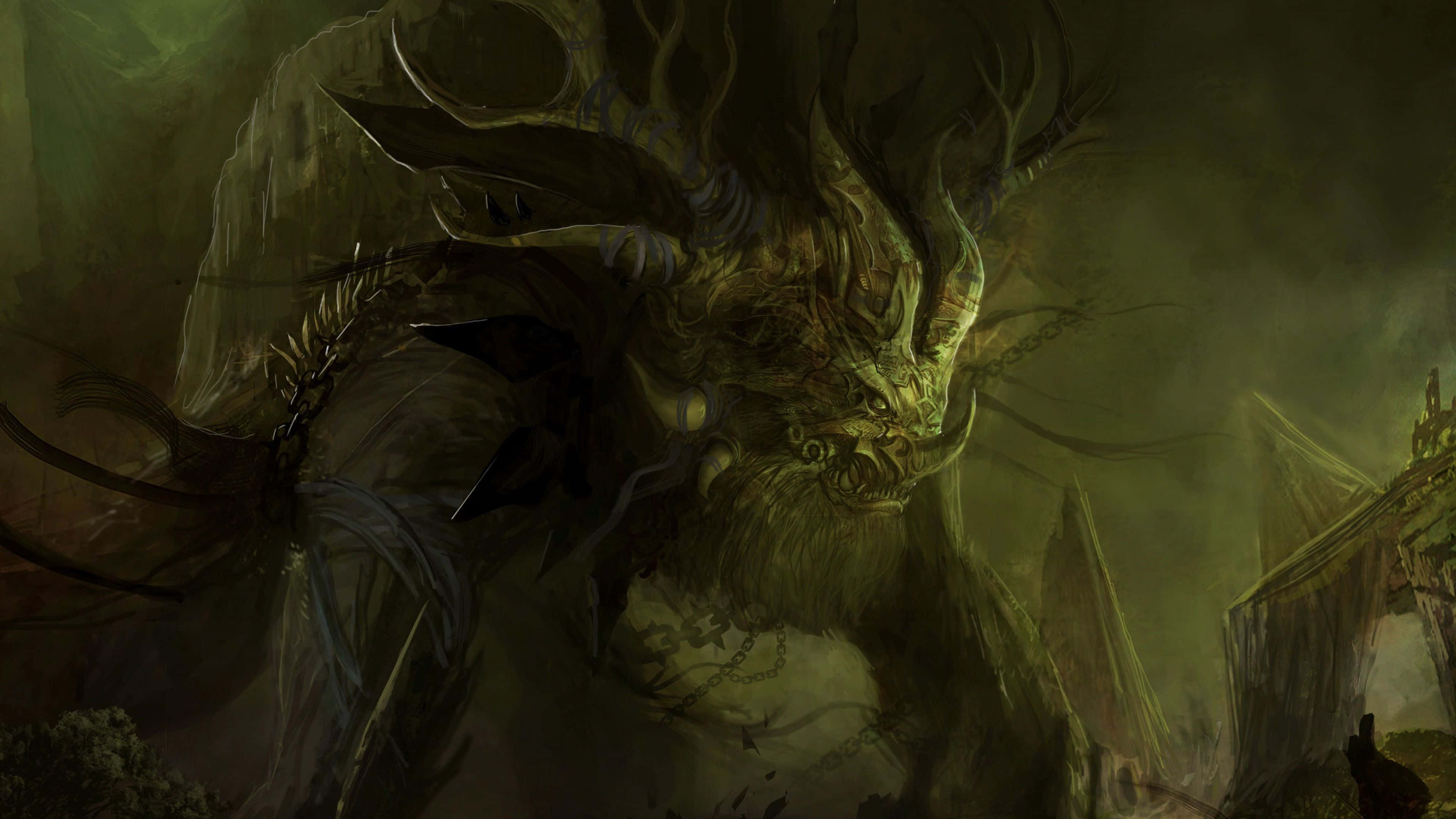 A Large Demon With Horns And A Sword Wallpaper