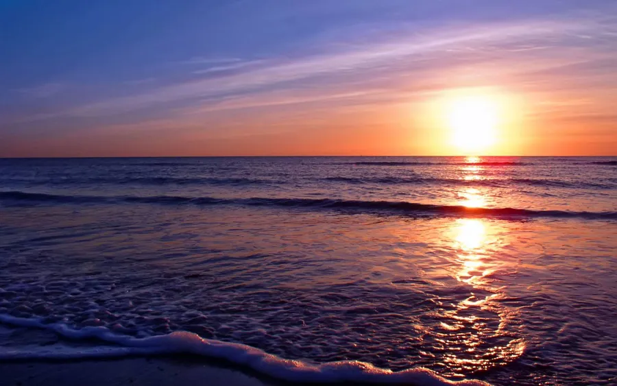 A Magical Moment Of A Dolphin Swimming Against The Backdrop Of A Spectacular Sunset Wallpaper