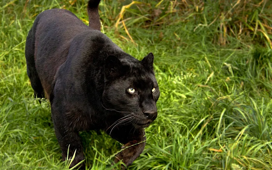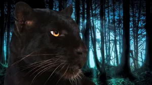 A Majestic Black Panther Stands Upon A Rock In Its Natural Habitat. Wallpaper