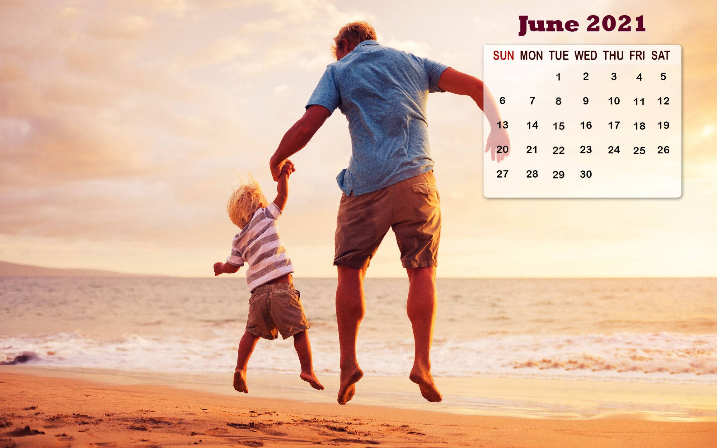 A Man And A Child Are Jumping On The Beach Wallpaper