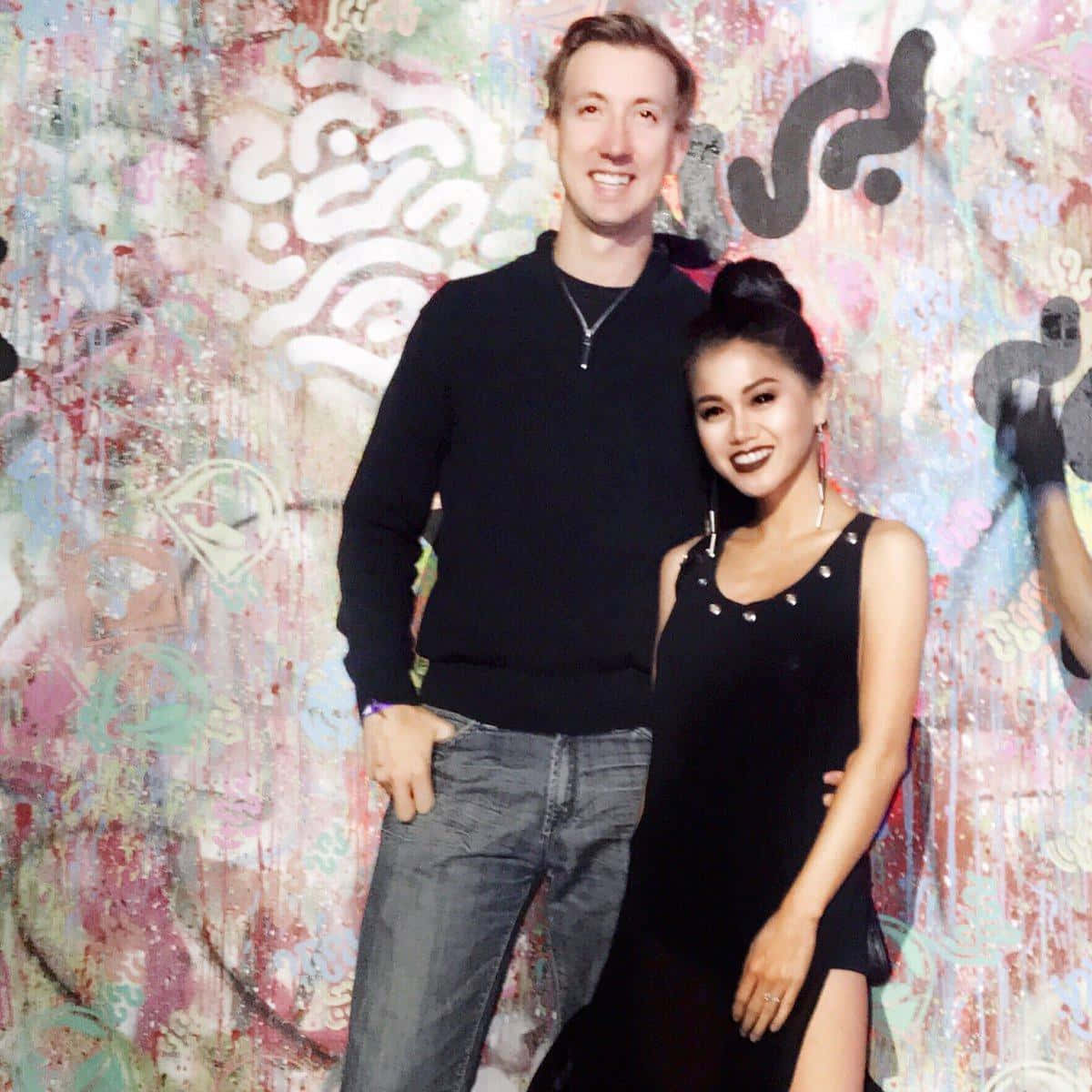 A Man And Woman Standing In Front Of A Wall Wallpaper