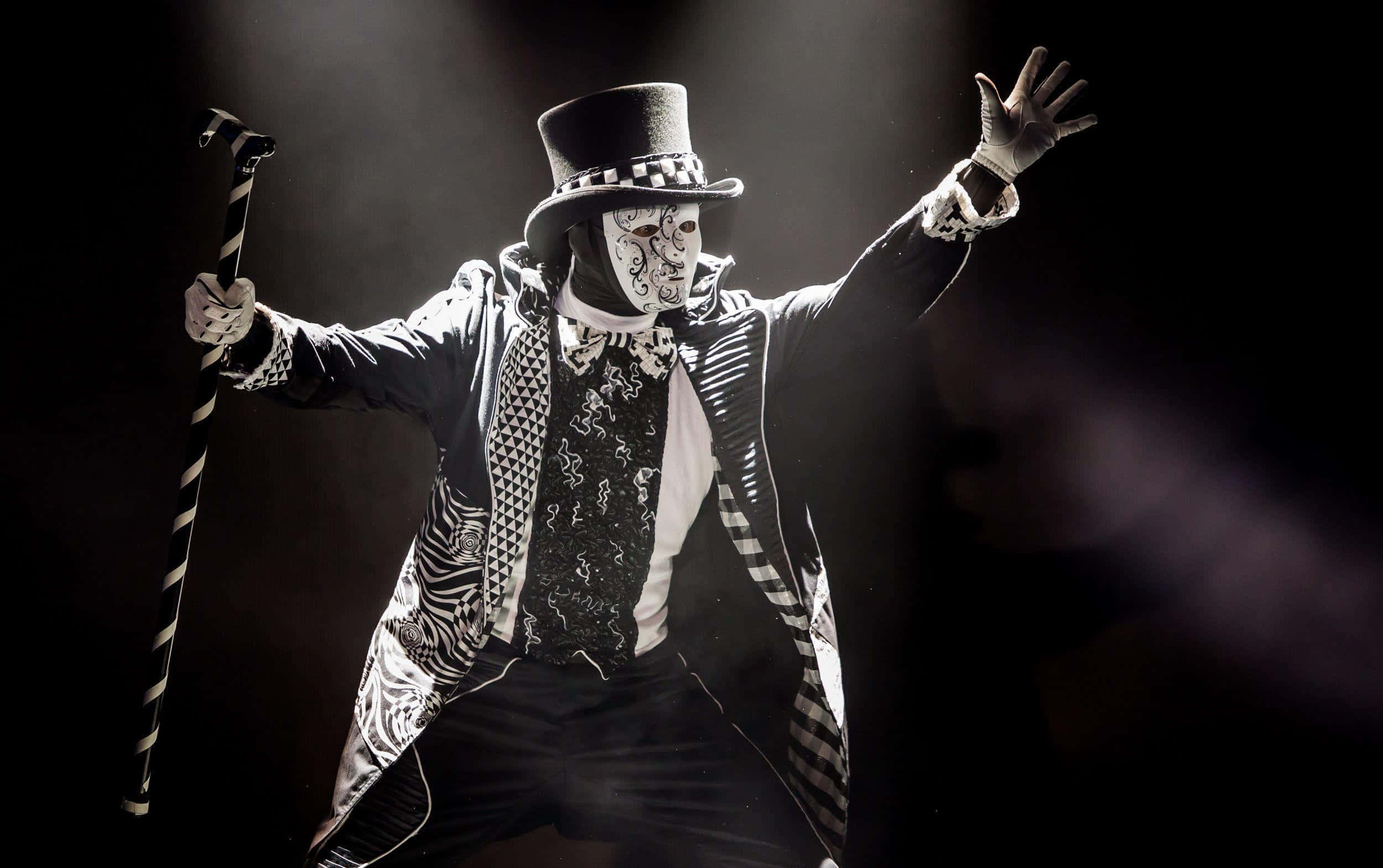 A Man In A Costume Holding A Cane And A Stick Wallpaper