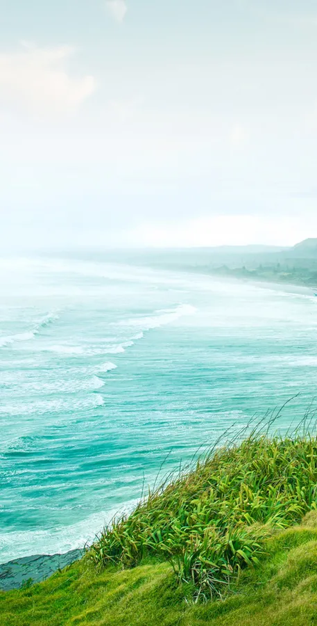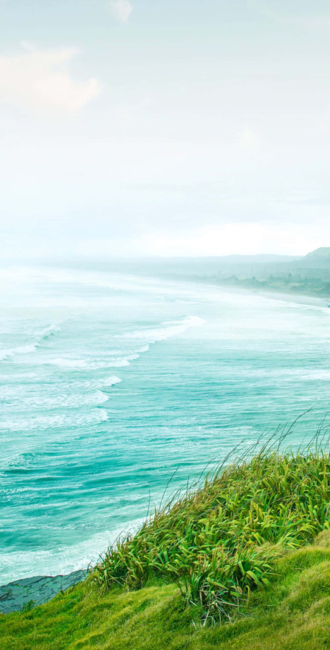A Man Is Standing On A Hill Overlooking The Ocean Wallpaper