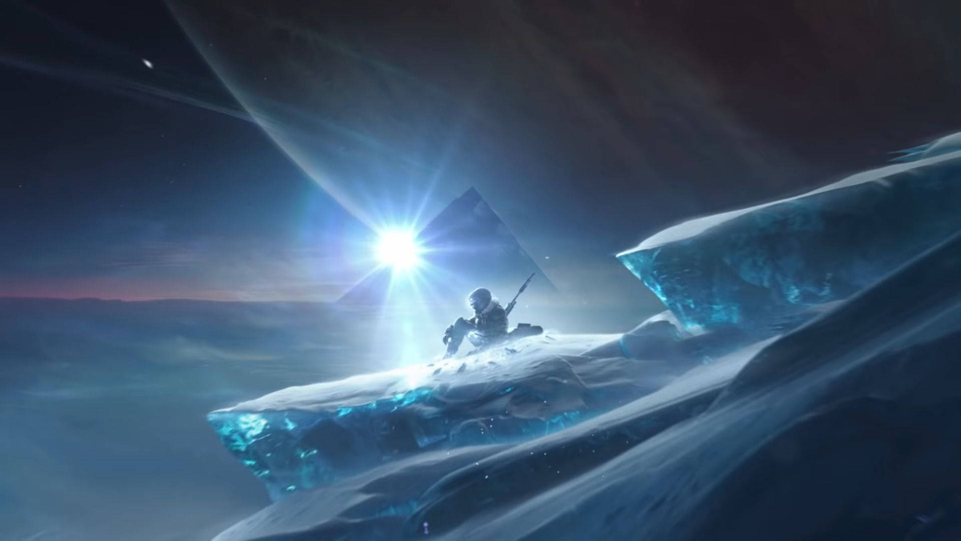 A Man Is Standing On Top Of An Iceberg With A Torch Wallpaper