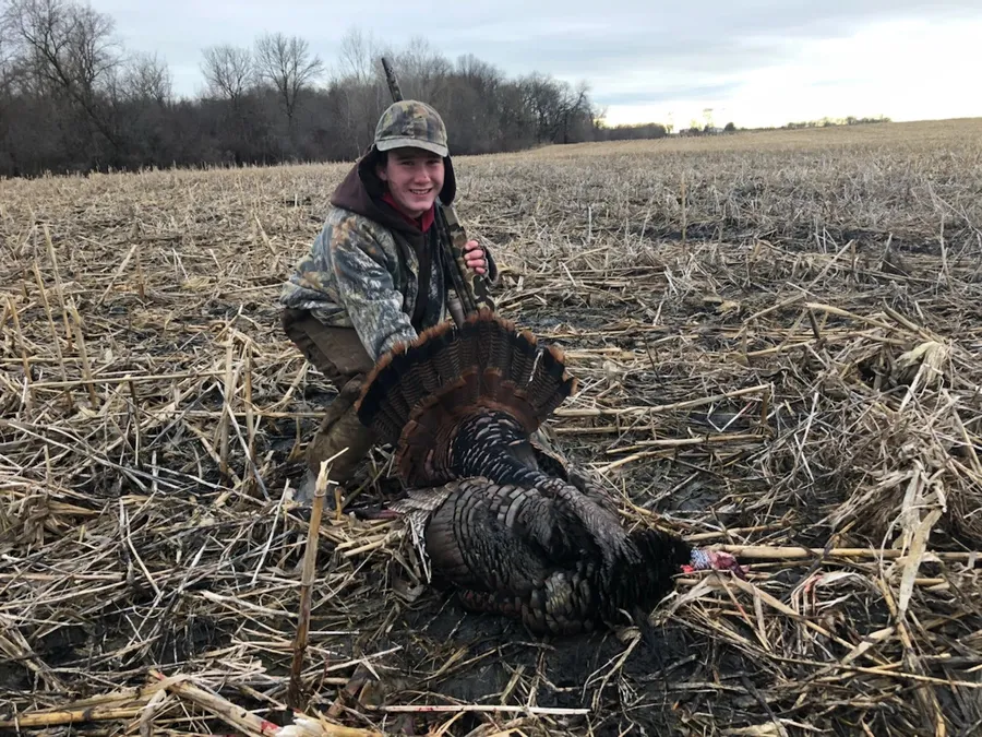 A Man Kneeling Down In A Field With A Turkey Wallpaper