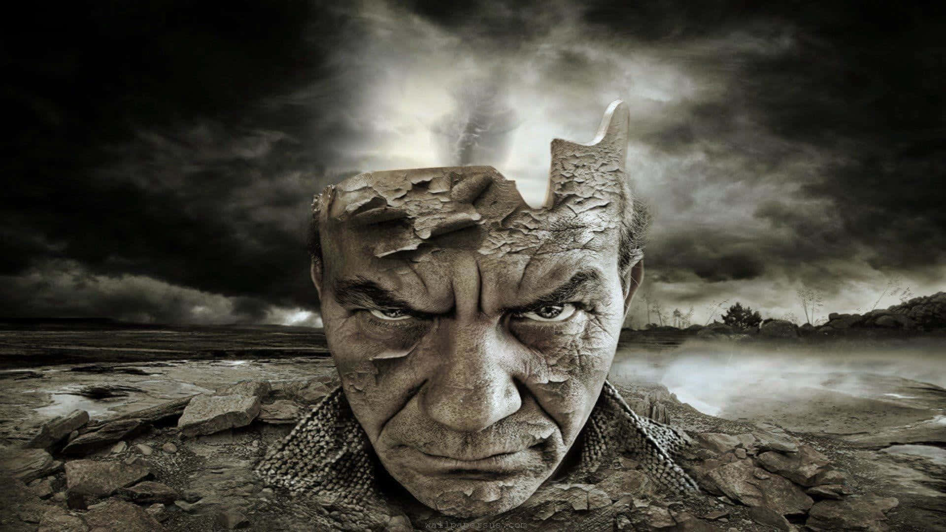 A Man’s Head Is Shown In A Dark Environment Wallpaper
