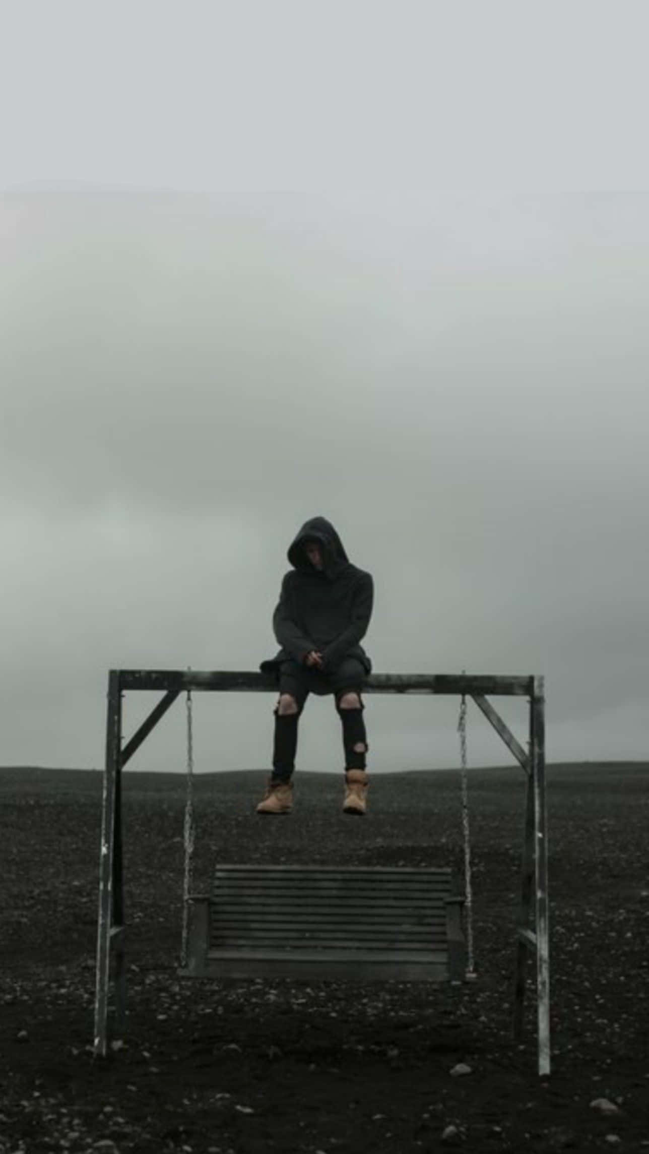 A Man Sitting On A Bench In A Field Wallpaper
