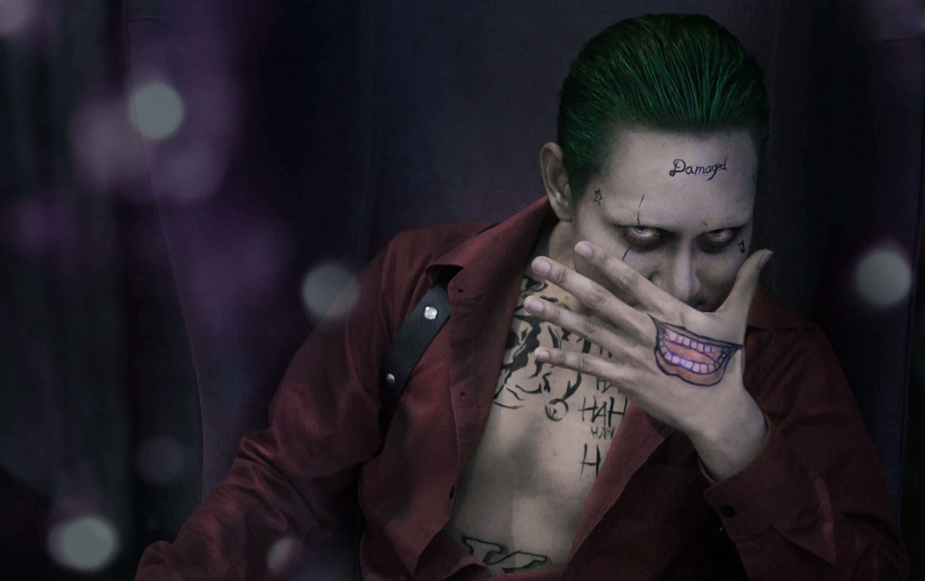 A Man With Green Hair And Tattoos Is Sitting On A Chair Wallpaper