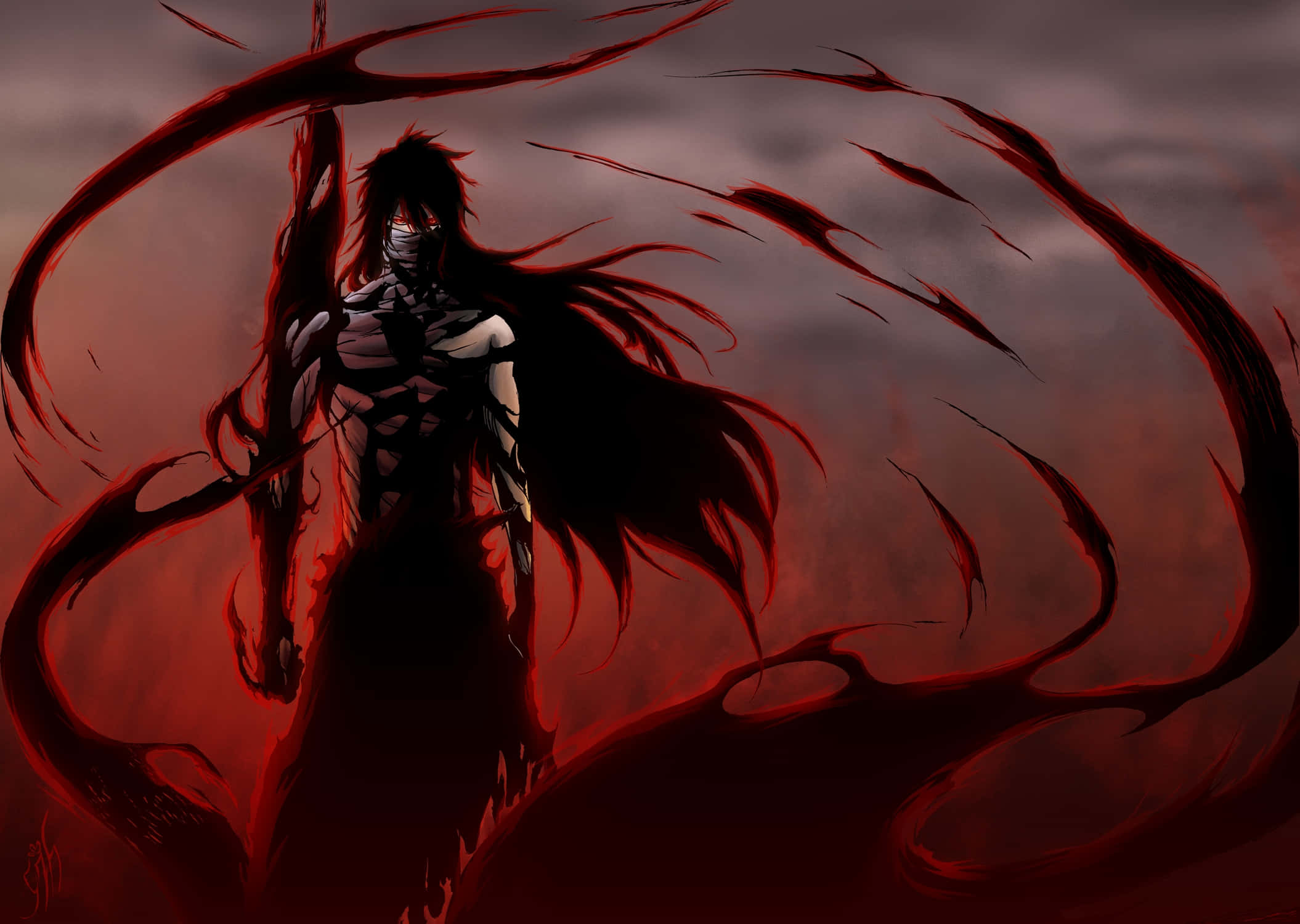 A Man With Long Hair Standing In Front Of A Red Sky Wallpaper