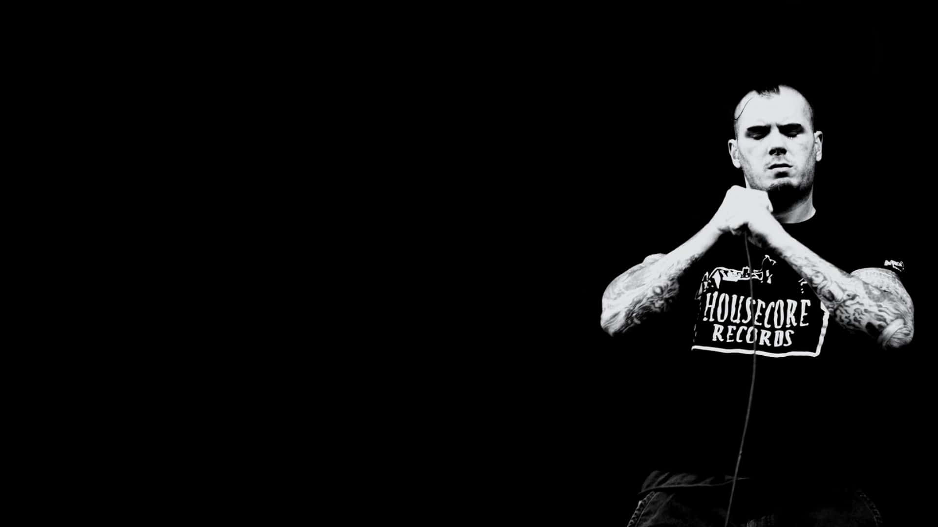 A Man With Tattoos Holding A Microphone Wallpaper