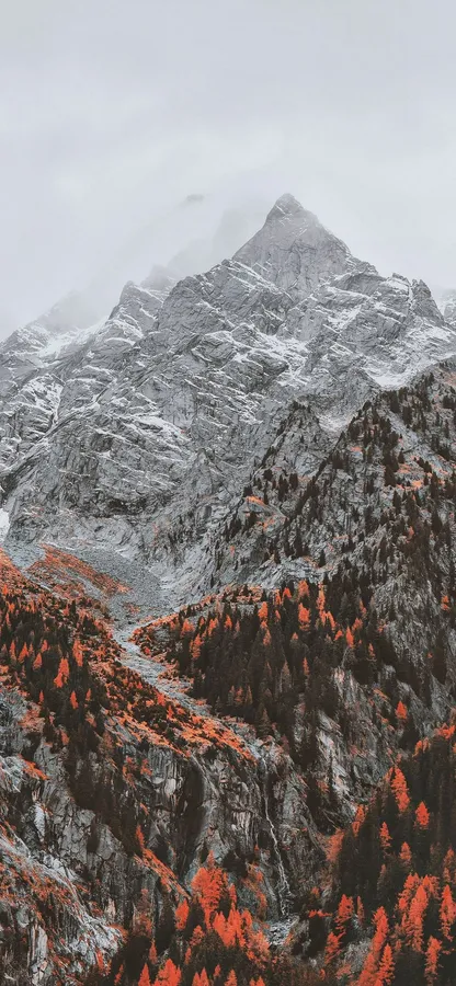 A Mountain Range With Red Trees And A Mountain Wallpaper