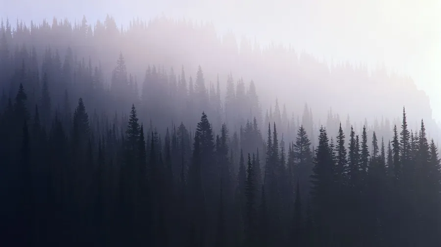 A Mountain With Trees In The Fog Wallpaper