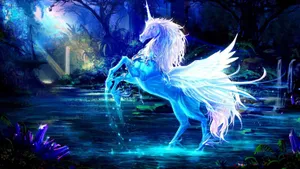 A Mythical White Unicorn Trots Gently In The Dark Forest Wallpaper