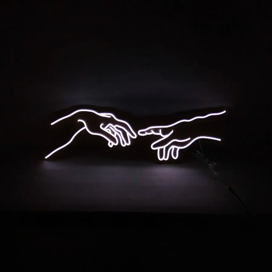 A Neon Sign Showing The Creation Of Adam Wallpaper
