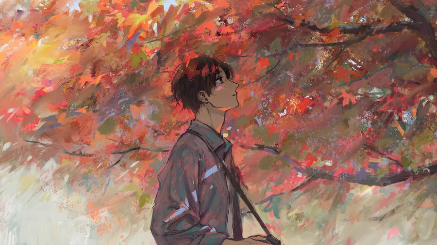 A Painting Of A Man Standing Under A Tree Wallpaper