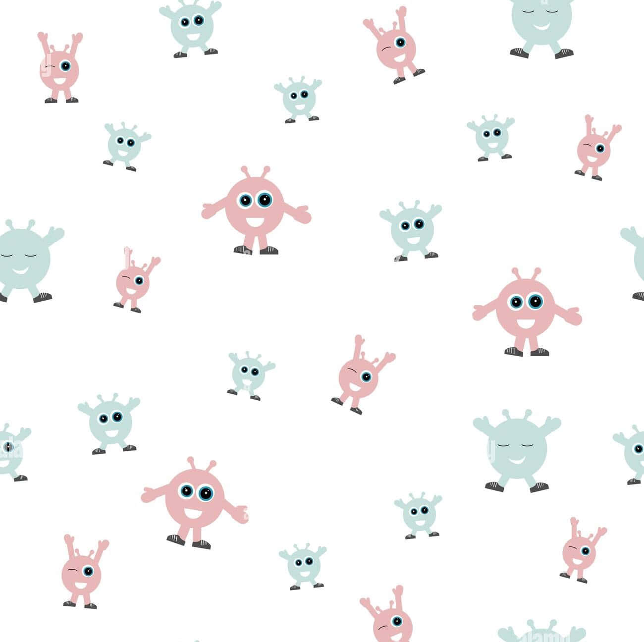 A Pattern Of Cute Little Monsters On A White Background Wallpaper