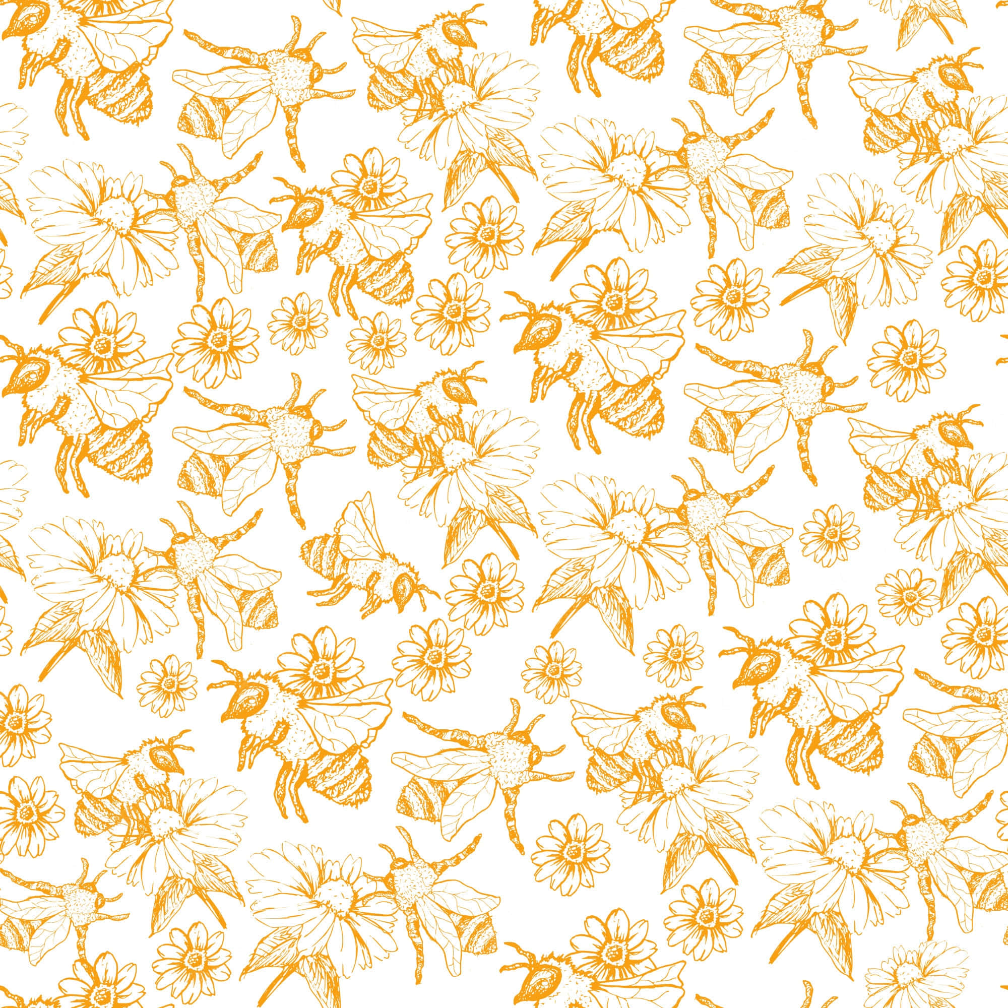 A Pattern With Bees And Flowers On White Wallpaper