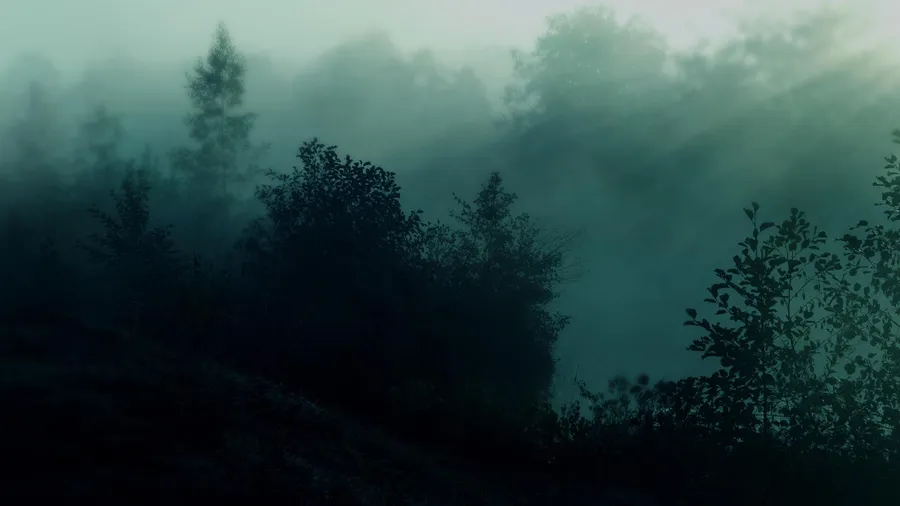 A Peaceful And Dark Green Forest, Surrounded By Towering Trees. Wallpaper