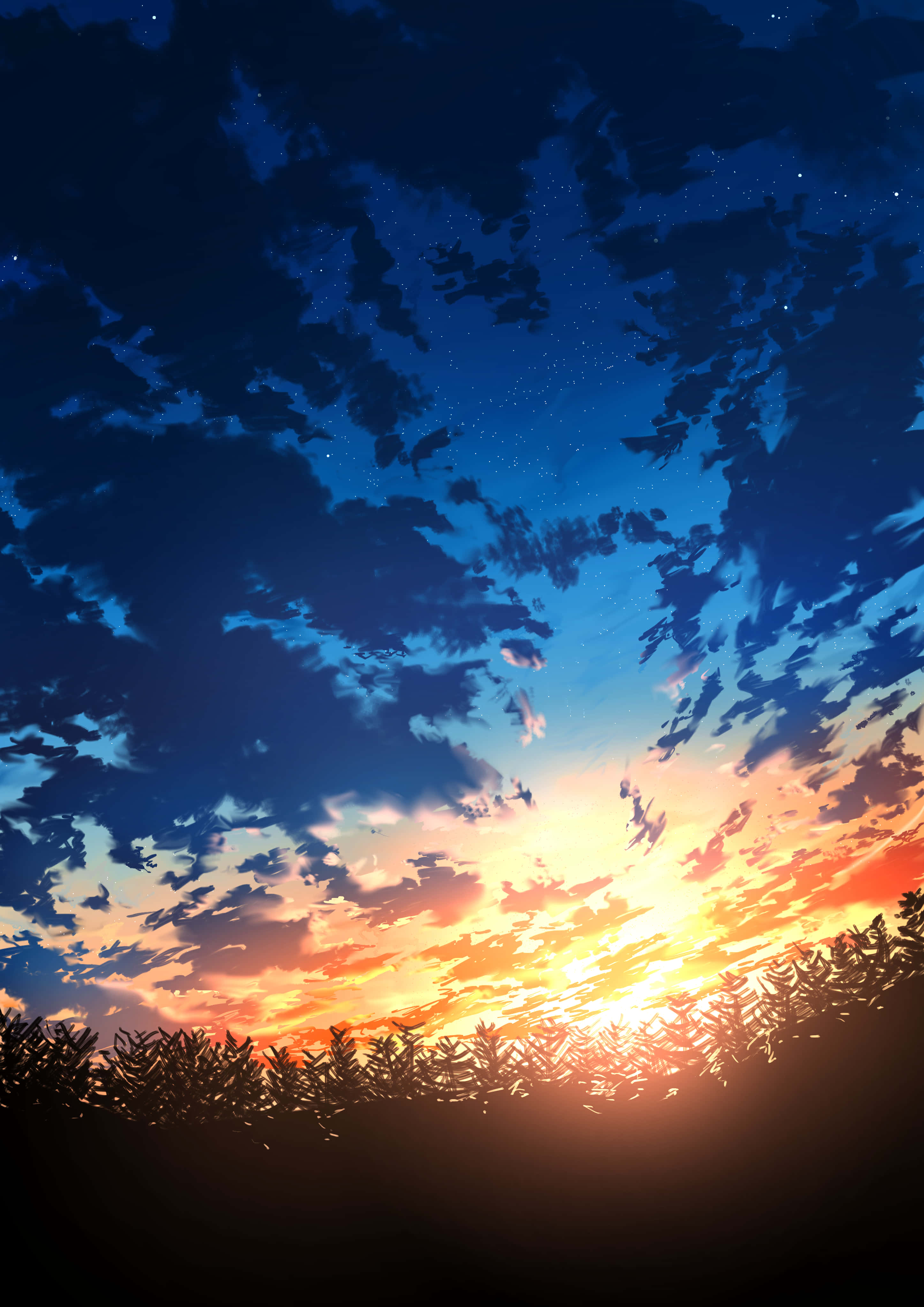 A Peaceful Evening At Anime Sunset Wallpaper