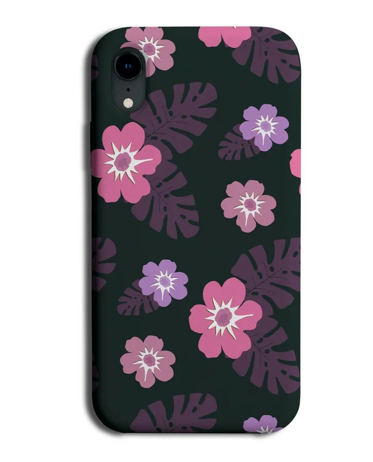 A Phone Case With Purple Flowers On Black Wallpaper