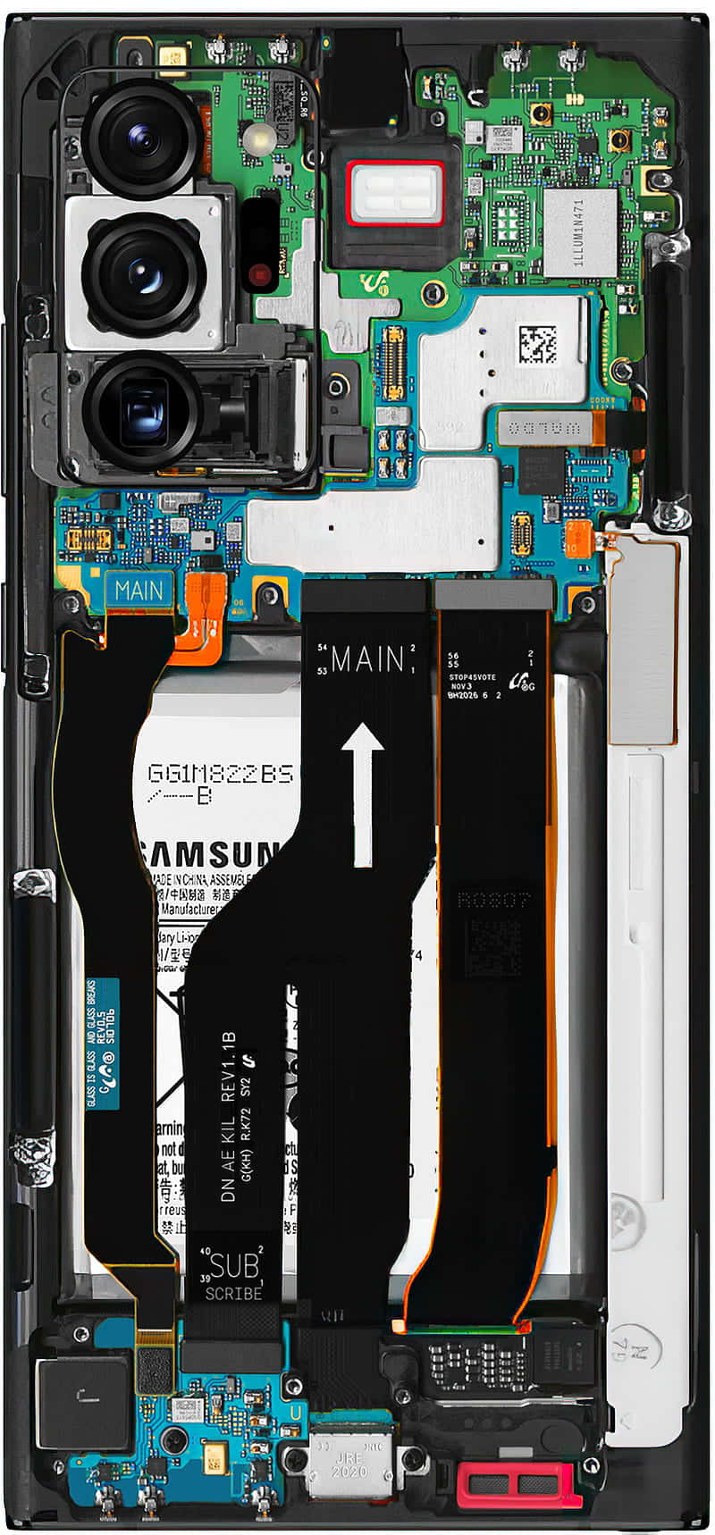A Phone With Its Internal Parts Exposed. Wallpaper