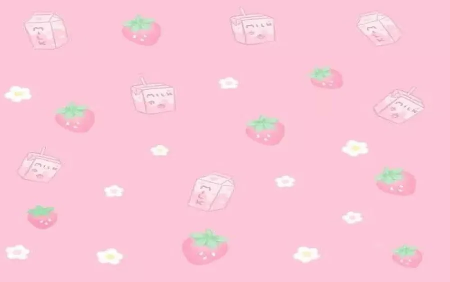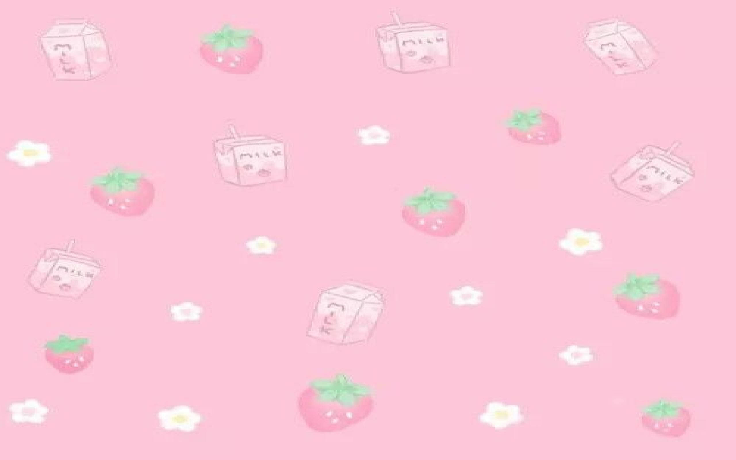 A Pink Background With Strawberries And Flowers Wallpaper