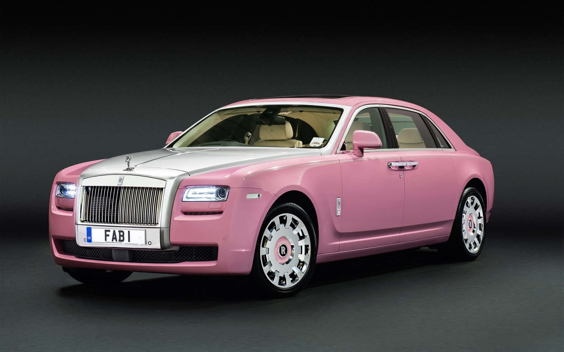 A Pink Rolls Royce Is Shown In A Dark Room Wallpaper