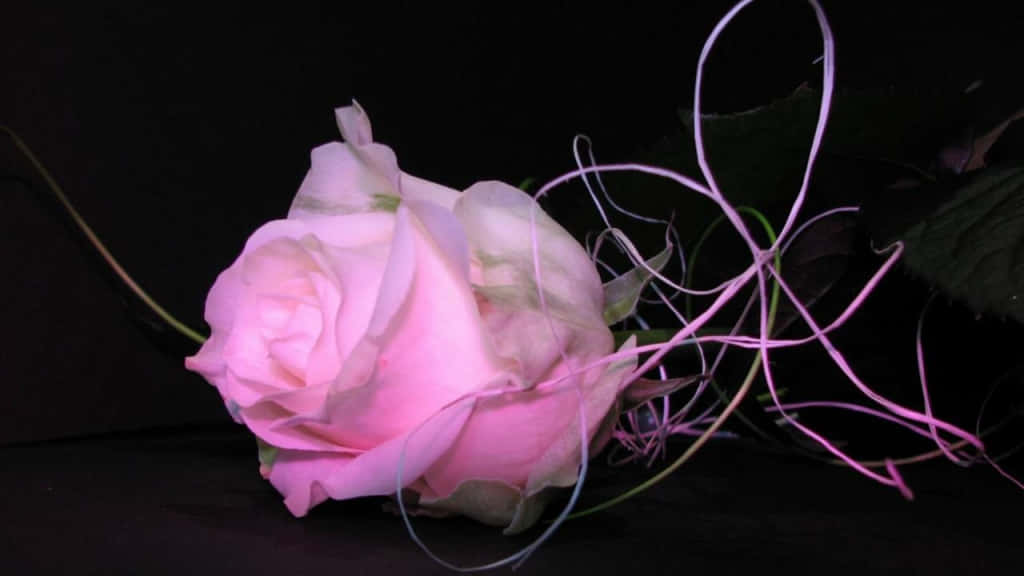 A Pink Rose With A Pink Light Shining On It Wallpaper