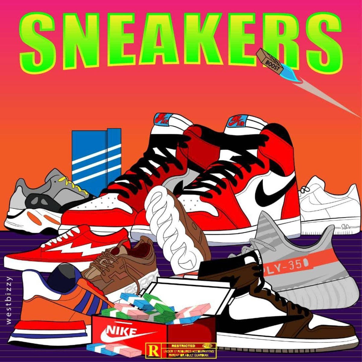 A Poster With Sneakers And Other Items Wallpaper