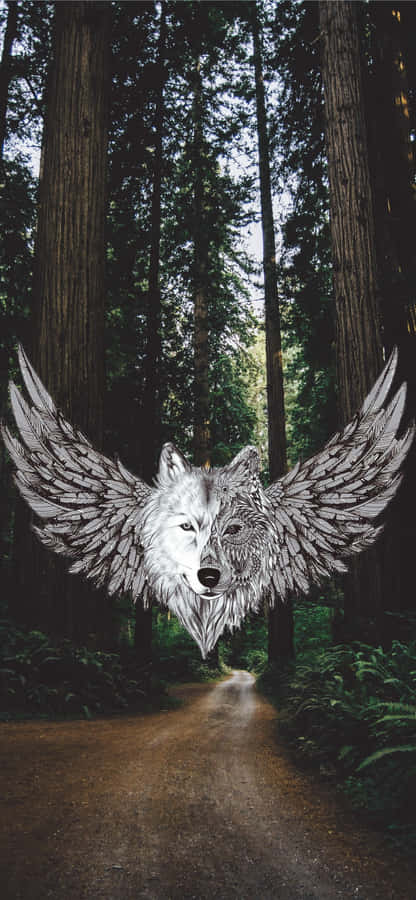 “a Powerful And Majestic Winged Wolf Takes Flight” Wallpaper