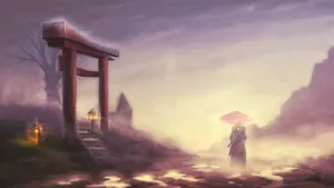 A Samurai Stands Atop A Rooftop, Sword Drawn And Ready To Fight. Wallpaper