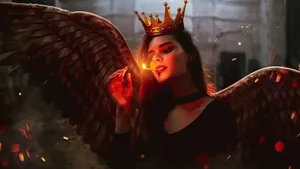 A Seductive Devil Girl Looking Through Glasses Wallpaper