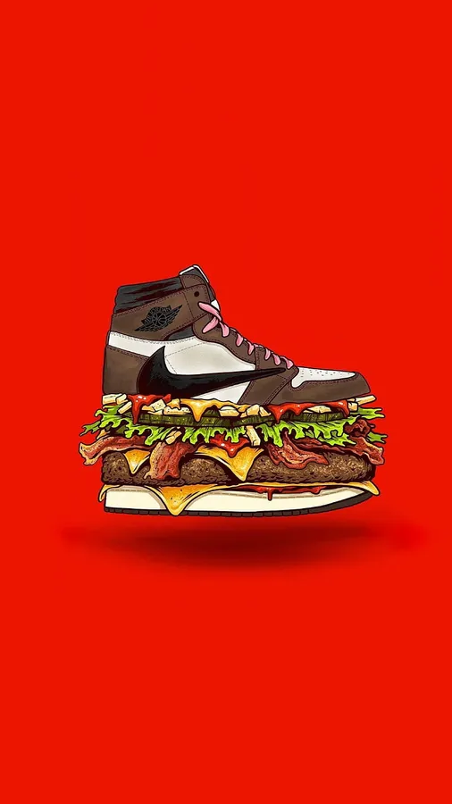 A Shoe With A Hamburger On Top Of It Wallpaper