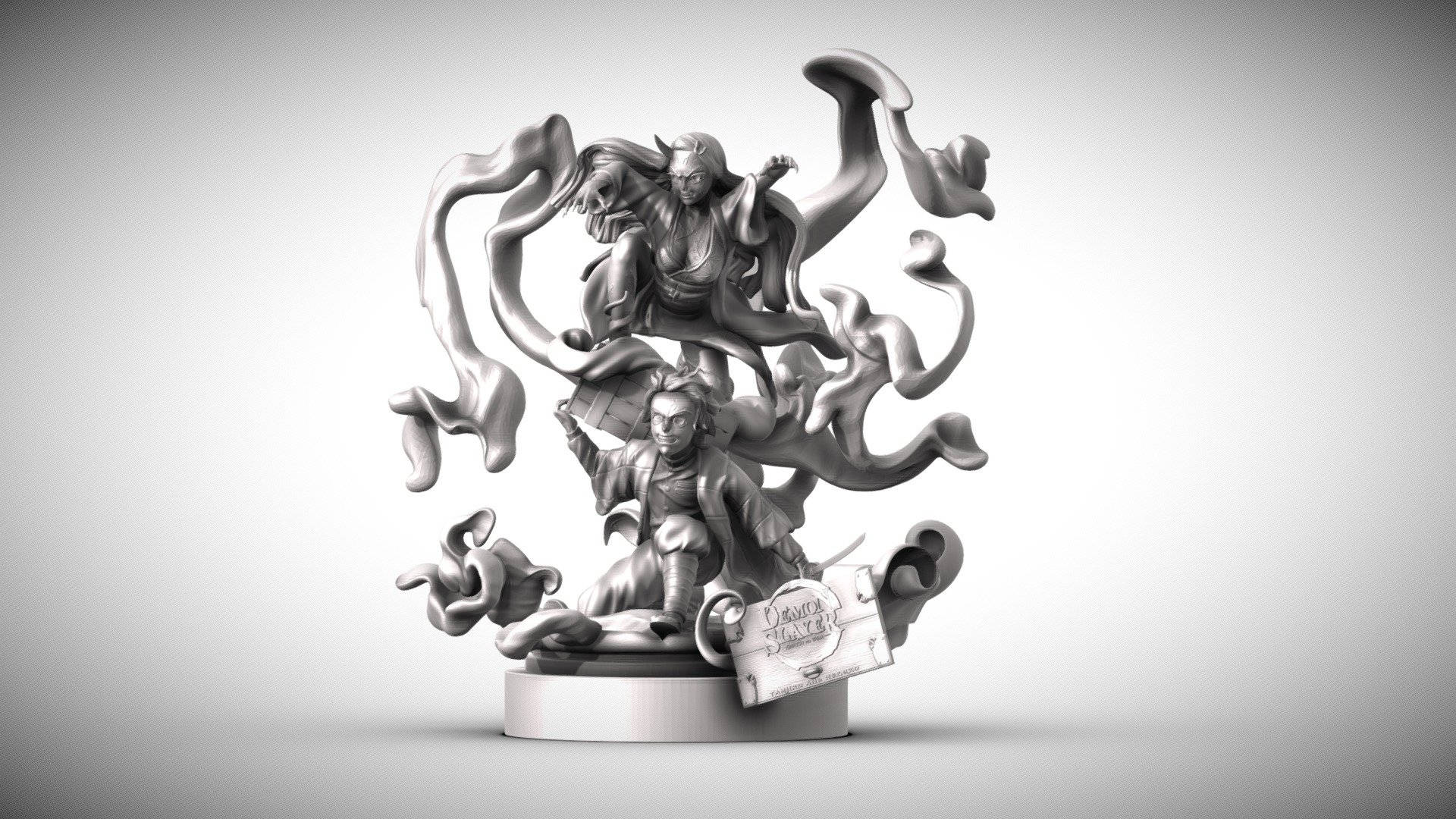 A Silhouetted Figure Prepares To Fight An Unseen Enemy In Demon Slayer: Black And White Wallpaper