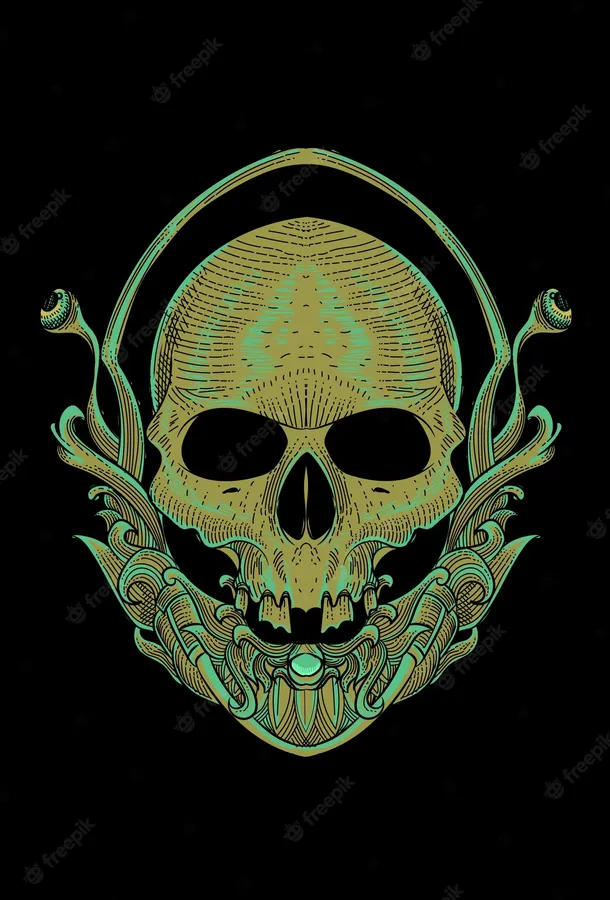 A Skull With A Green And Gold Design On A Black Background Wallpaper
