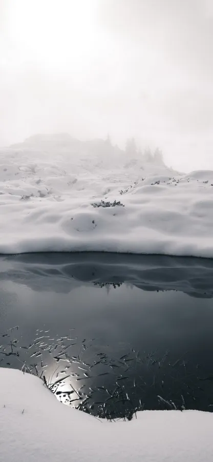 A Snow Covered Lake With A Reflection Wallpaper