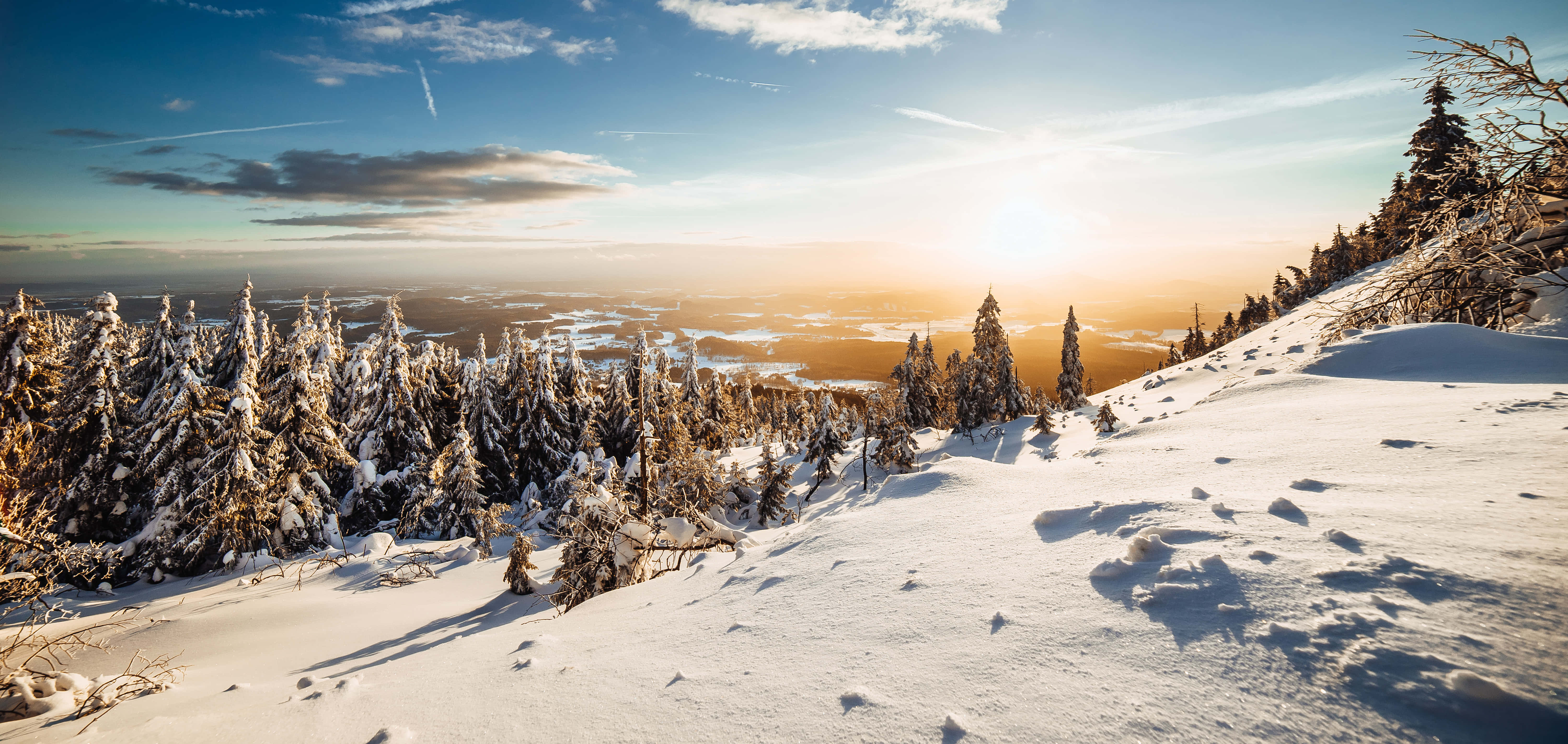 A Snow Covered Mountain With Trees In The Background Wallpaper