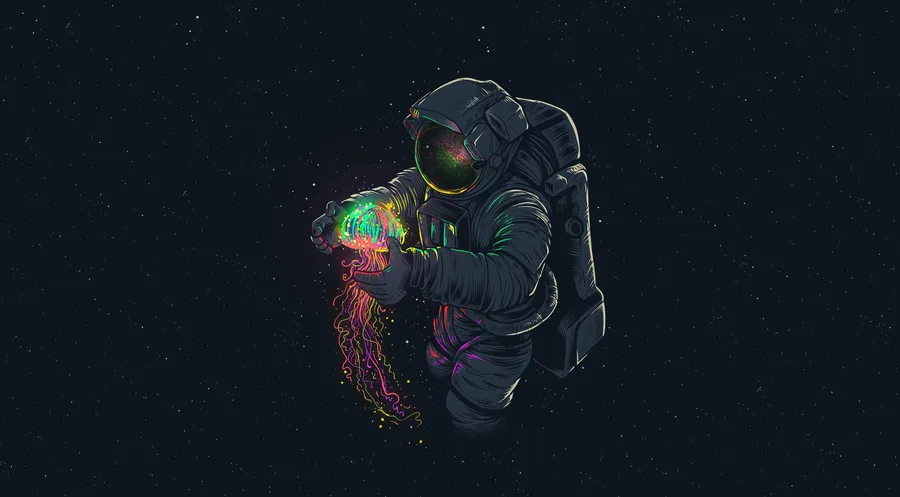 A Spaceman Holding A Colorful Ball Wallpaper